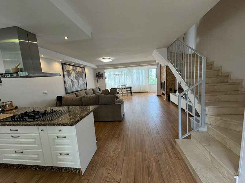 On the ground floor, is a spacious living area with open plan lounge and dining area with a separate fully fitted kitchen and guest toilet. The living room lead onto a private terrace, ideal for outdoor dining.