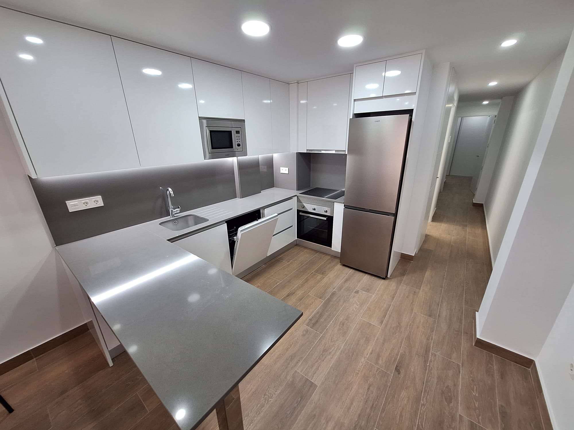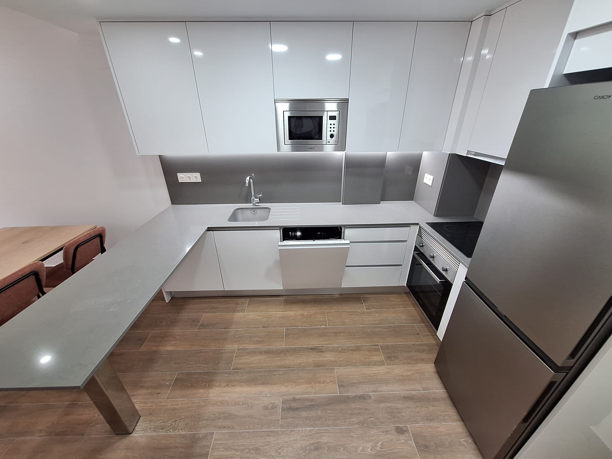 La vivienda cuenta con 101 m² y se distribuye en un amplio salón, 2 dormitorios, 2 baños, cocina americana y balcón. Está totalmente equipada con todo lo necesario para vivir cómodamente: mobiliario moderno y electrodomésticos, incluido lavavajillas. Dispone de aire acondicionado central y calefacción por suelo radiante en los baños.