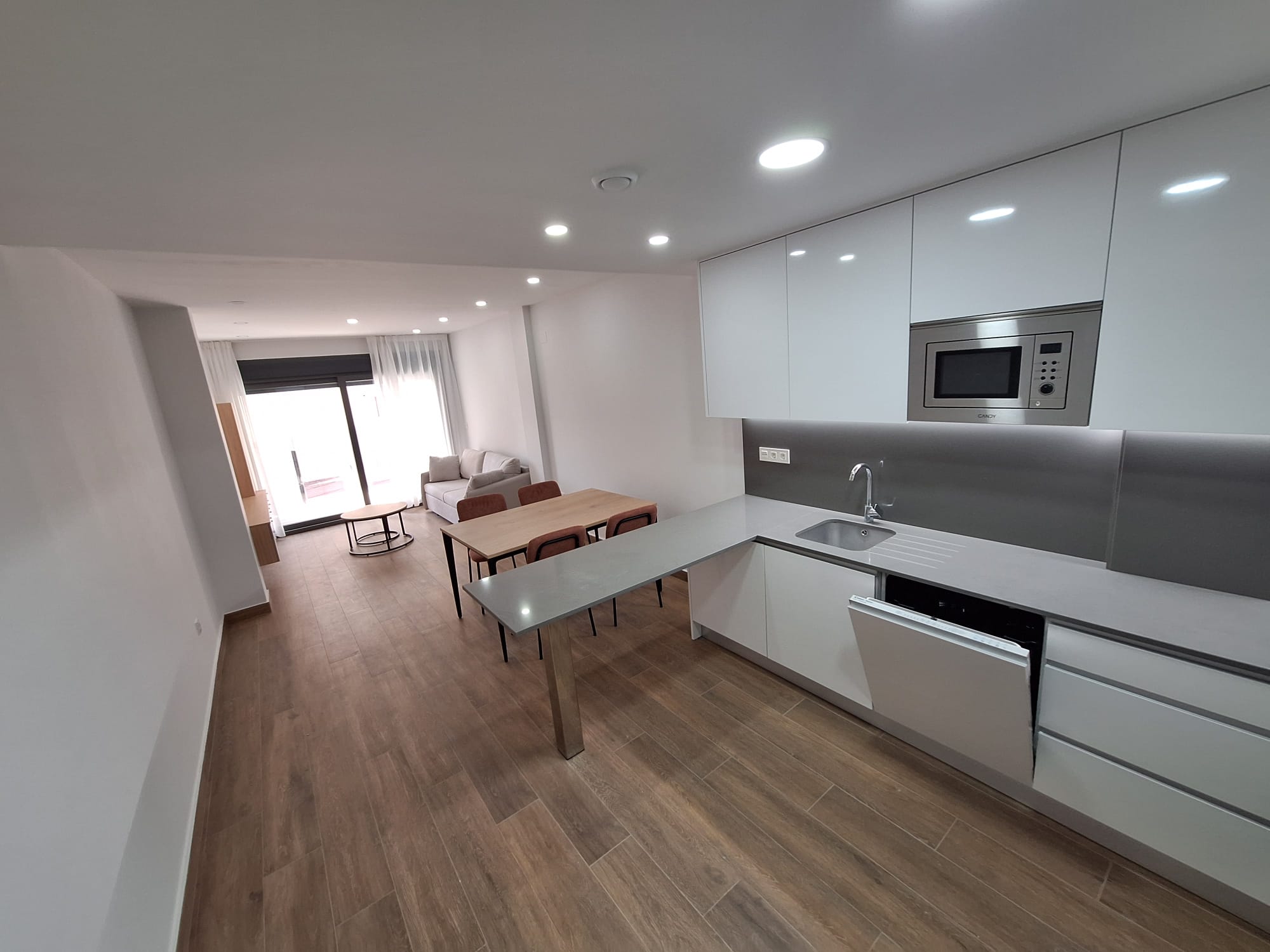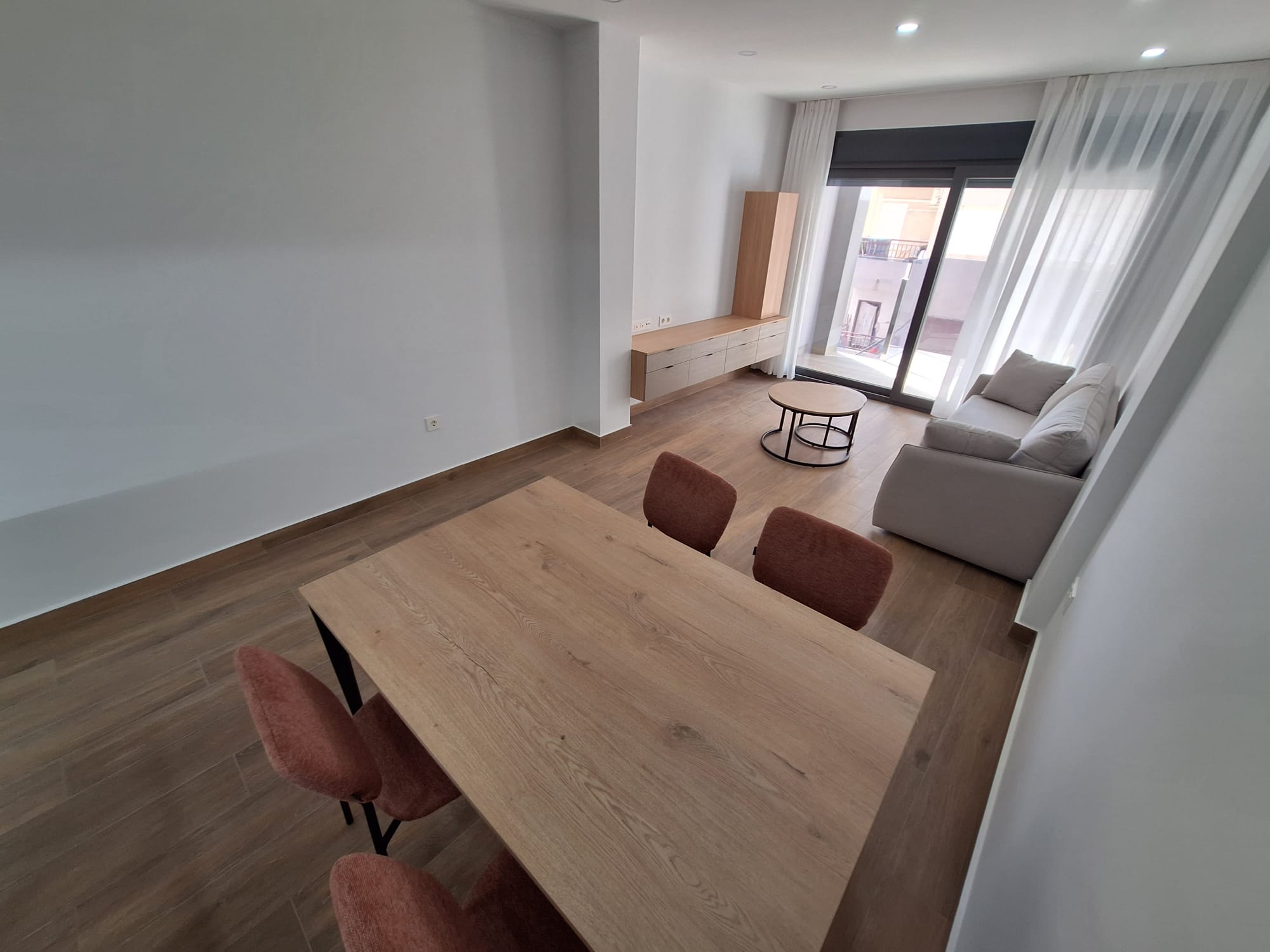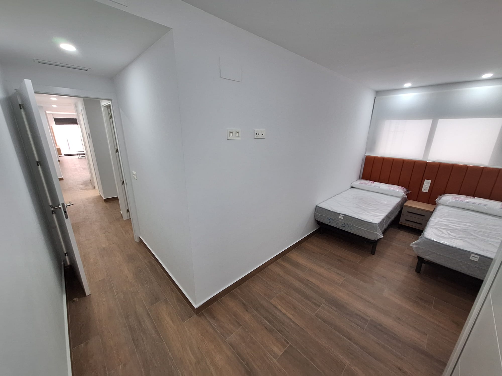 Ofrecemos en alquiler de larga temporada un moderno apartamento de dos dormitorios en obra nueva «Residencial Alegría XXIII» en Torrevieja, a tan solo 600 metros del mar. Tanto el residencial como el propio apartamento son completamente nuevos, lo que lo convierte en una opción ideal para una estancia cómoda y de larga duración.