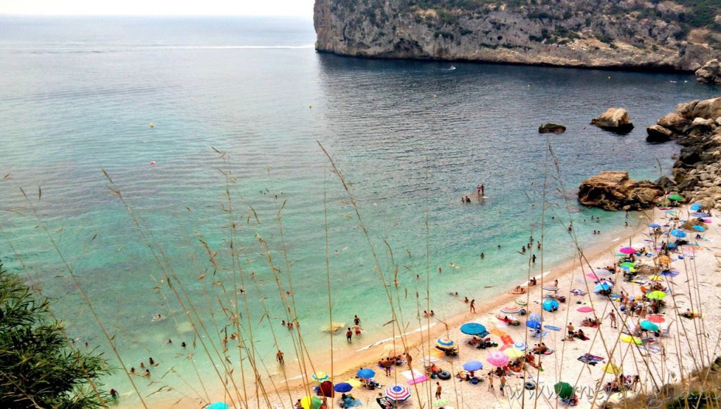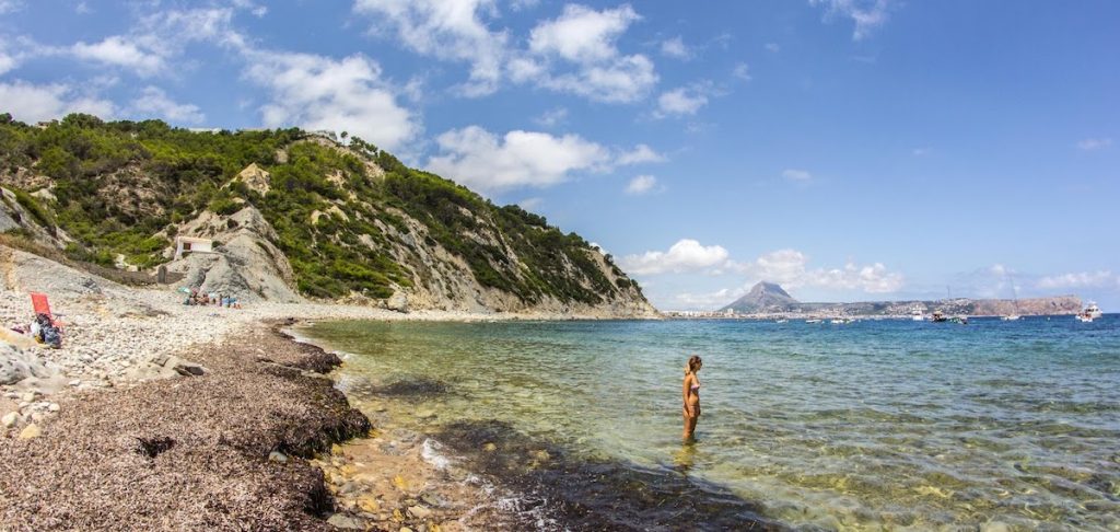 Kivinen lahti kauniilla näkymällä Montgó Massifille.