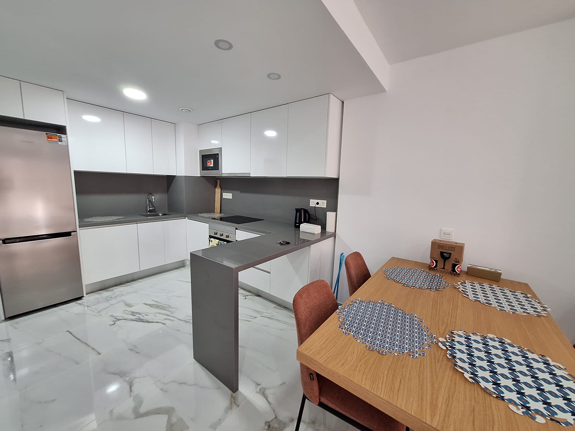 We offer for long-term rent a two-bedroom apartment in the new building “Residencial Alegría XIX” in Torrevieja, 150 meters from the sea. The apartment is 75 m2 and consists of a living room, 2 bedrooms, 2 bathrooms, an American-style kitchen and a balcony. It has everything you need for comfortable living and relaxation: furniture, household appliances, including a dishwasher. Central air conditioning. The sea, a beautiful promenade for walks and the beach Del Cura are 150 meters away. The complex has a swimming pool and a Finnish sauna (sauna service is paid!). Within walking distance from the building there is a supermarket and many bars and restaurants. Opening hours: