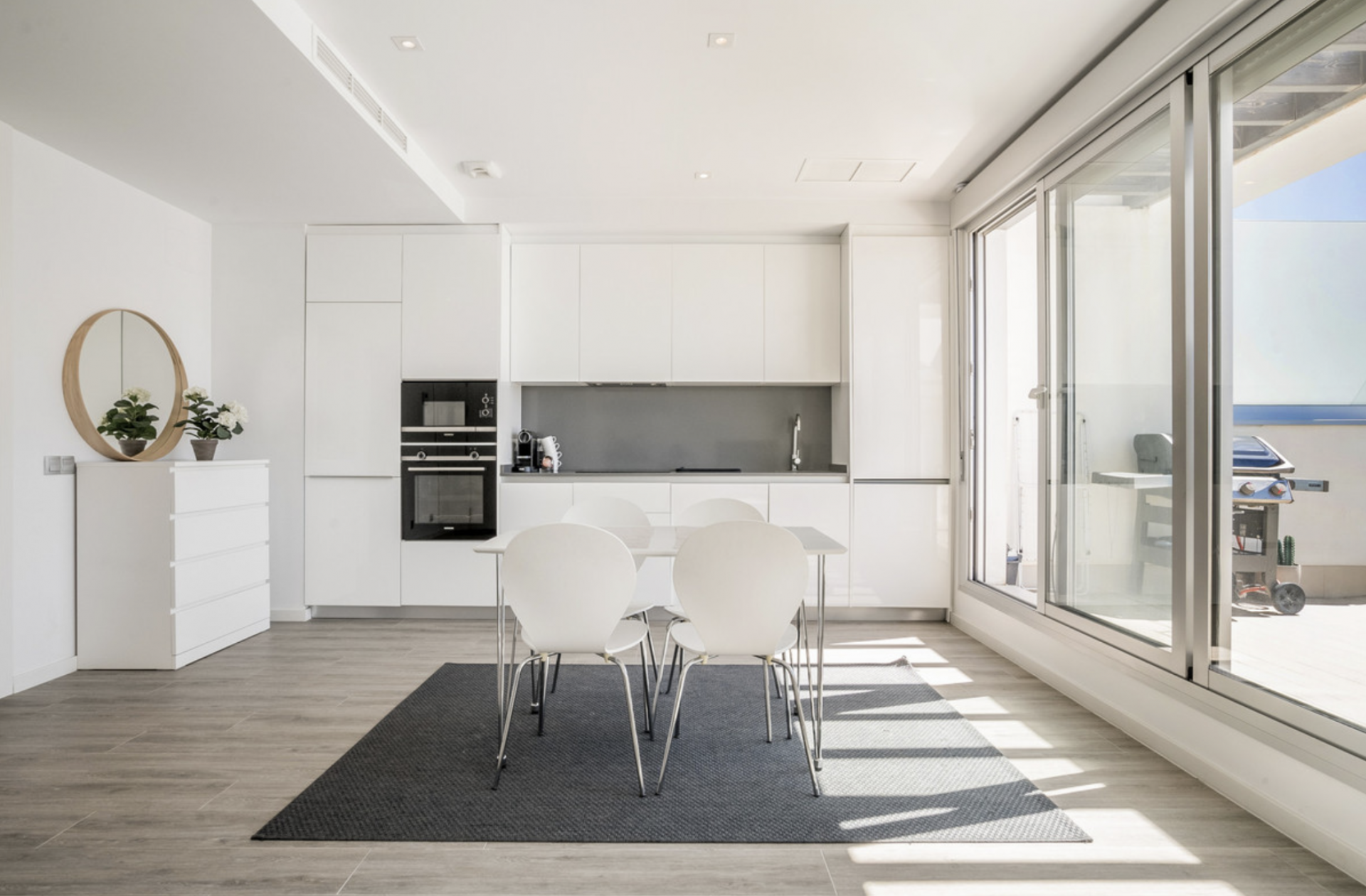 В нем есть просторная кухня-гостиная-столовая, открытое пространство с большим количеством света, идеально подходящее для отдыха или развлечения друзей и семьи.