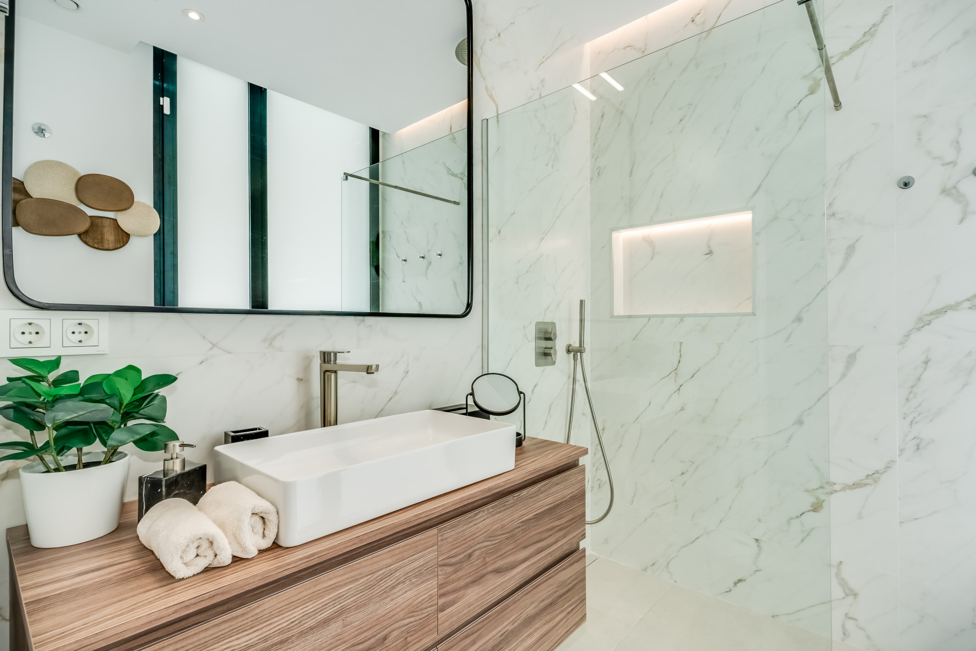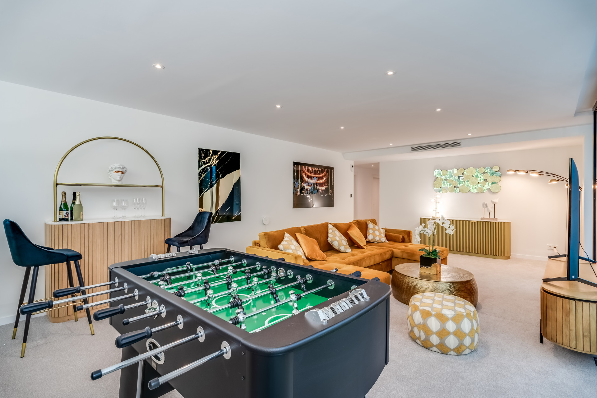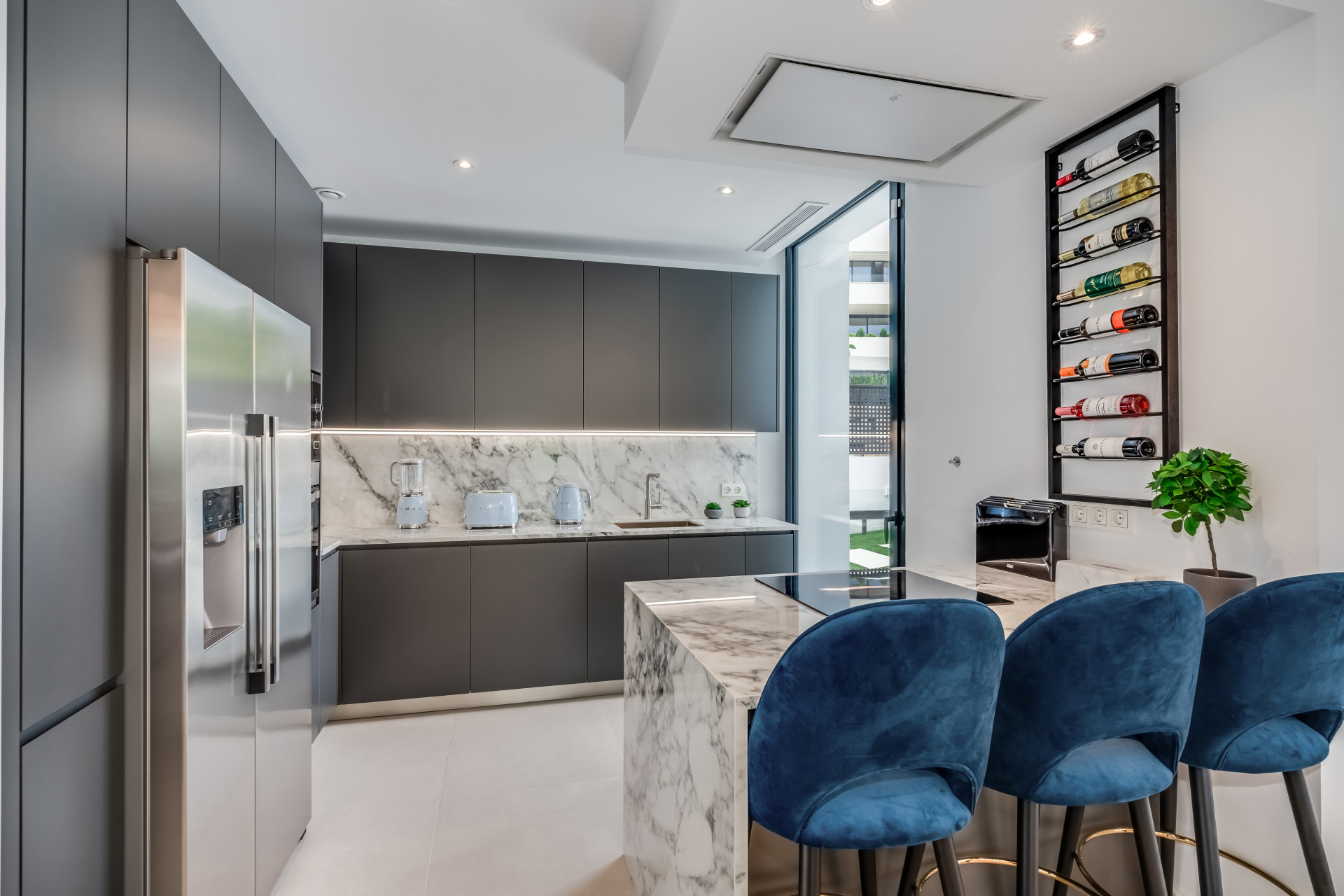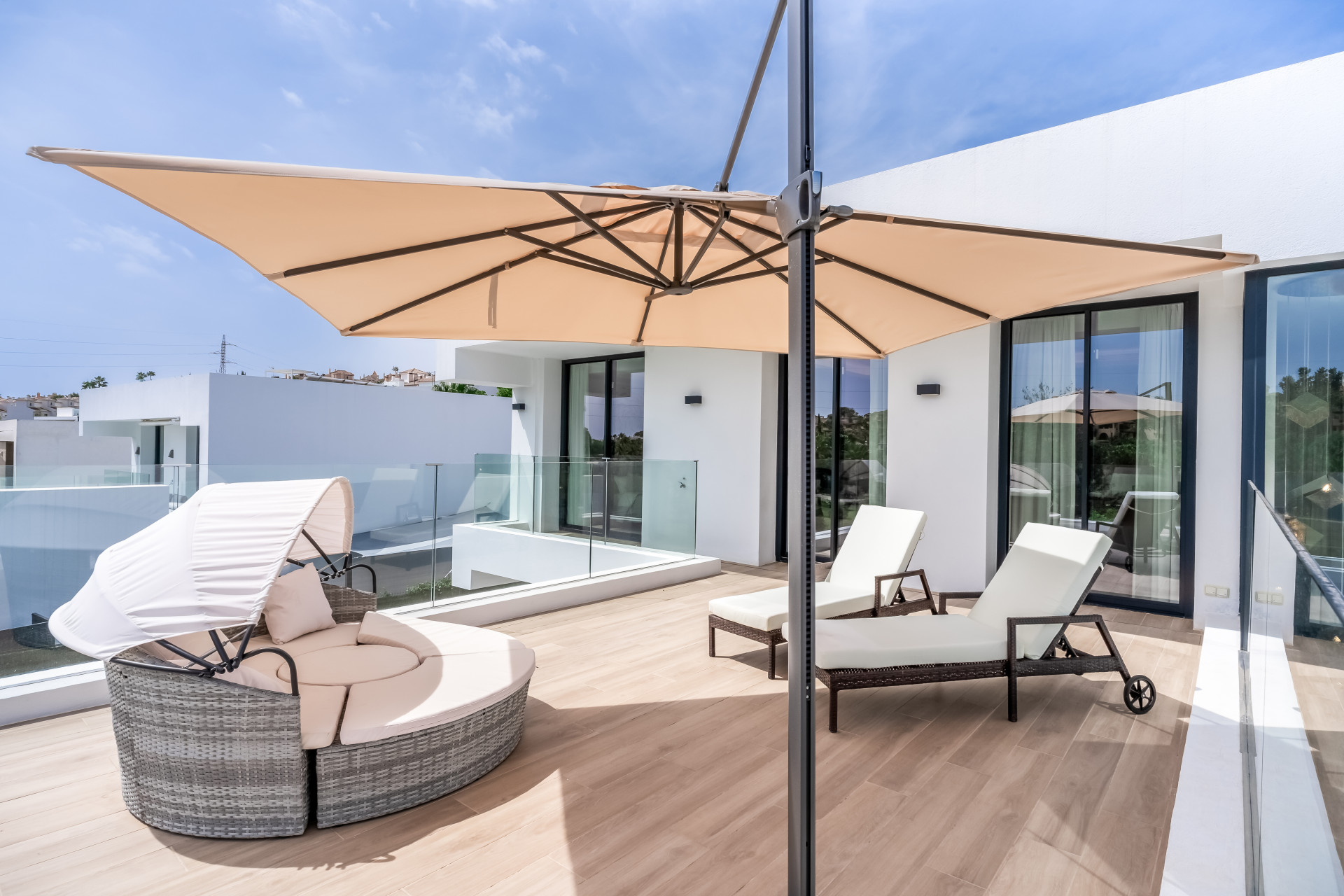 Вілла ідеально підходить для прийому гостей, пропонуючи простору лаунж-зону в підвалі з 75-дюймовим телевізором, додатковою кухнею та пральнею для зручності. Сонячні панелі сприяють енергоефективності, а високошвидкісний інтернет на оптоволокні покриває всю територію. Вілла розташована всього в кількох хвилинах від жвавого центру Марбельї та Пуерто-Бануса, поруч з ексклюзивними магазинами та ресторанами, пропонуючи неперевершене поєднання розкоші та зручності.
