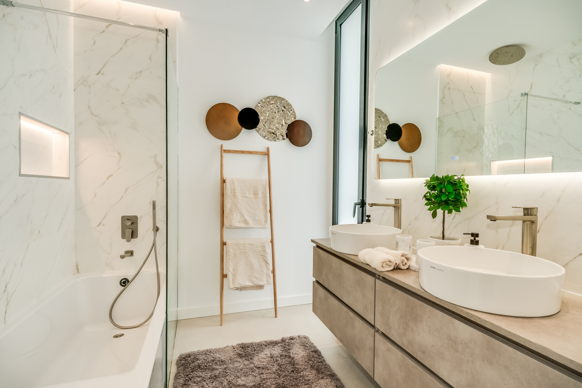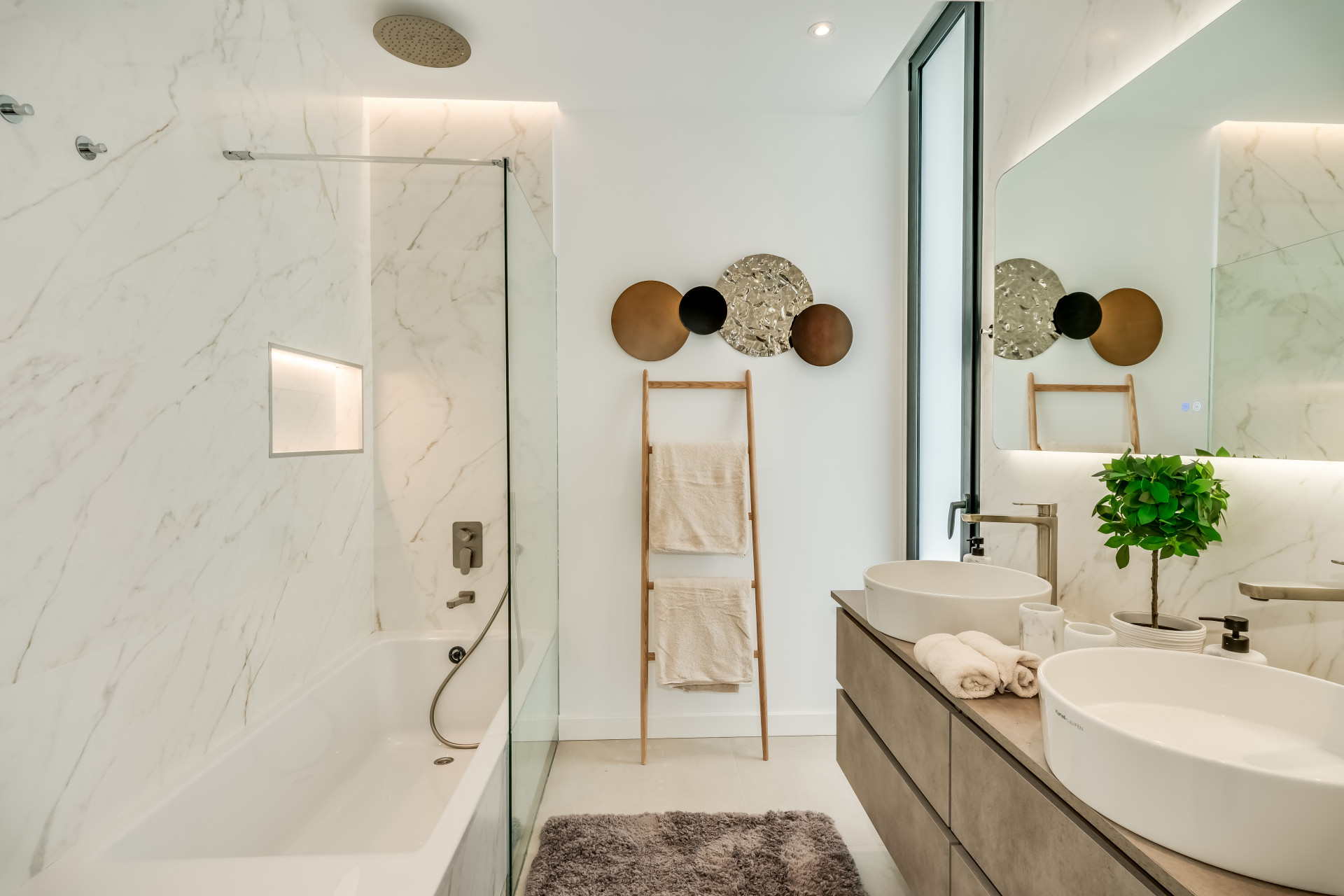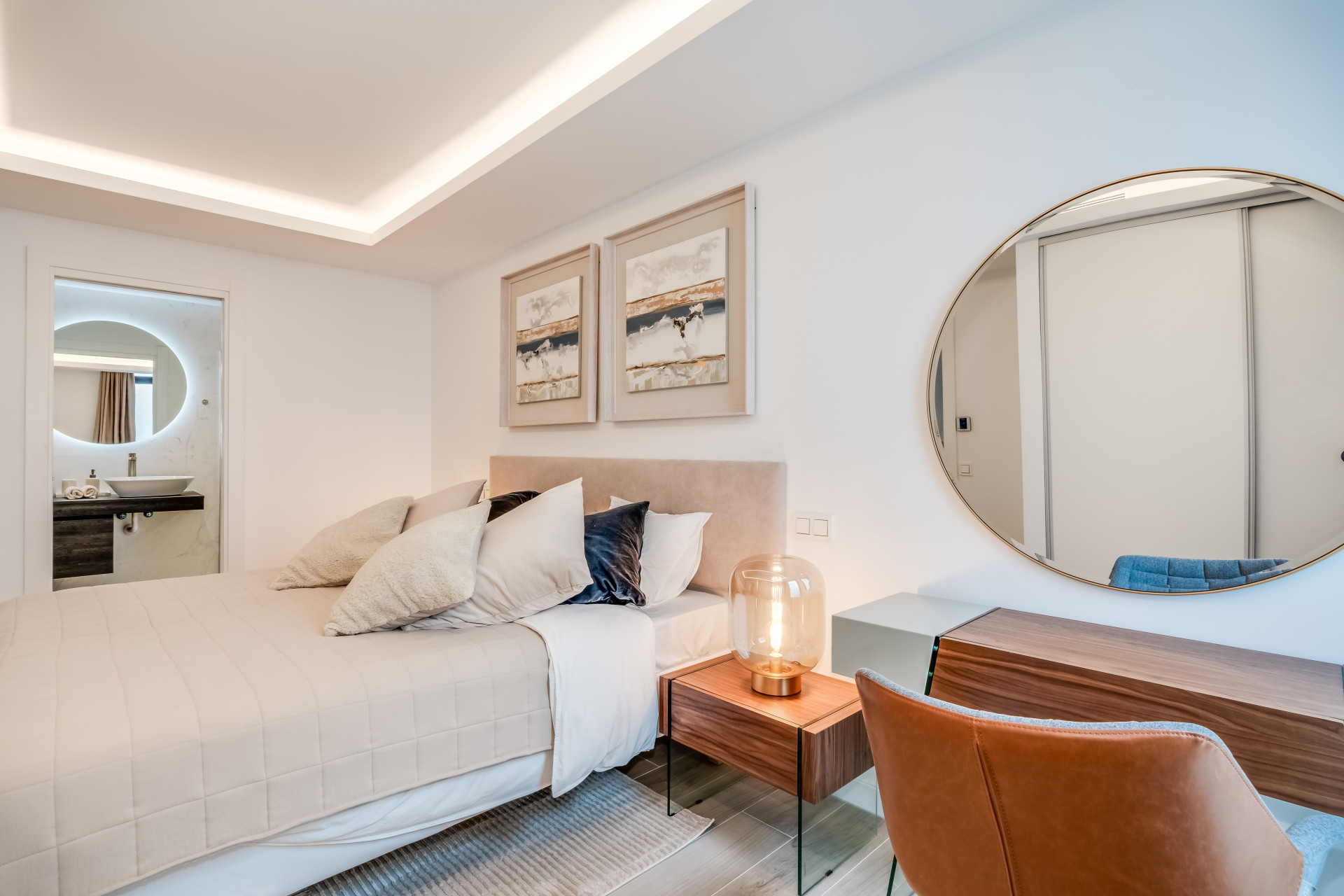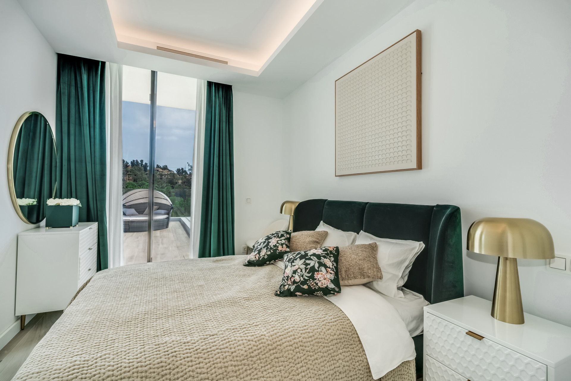 Інтер’єр вілли випромінює вишуканість, з підігрівом підлоги по всьому будинку та передовою системою кондиціювання Daikin Air Zone, яка гарантує ідеальну температуру протягом року. Кожен простір, від просторих спалень до елегантних ванних кімнат з душем, поєднує високоякісні матеріали та сучасну естетику, створюючи позачасову атмосферу. У центрі будинку розташована приголомшлива басейн infinity з підігрівом, з якого відкривається унікальний вид на поле для гольфу — ідеальне місце для відпочинку та насолоди природою.
